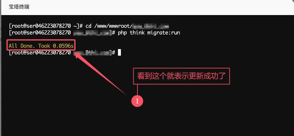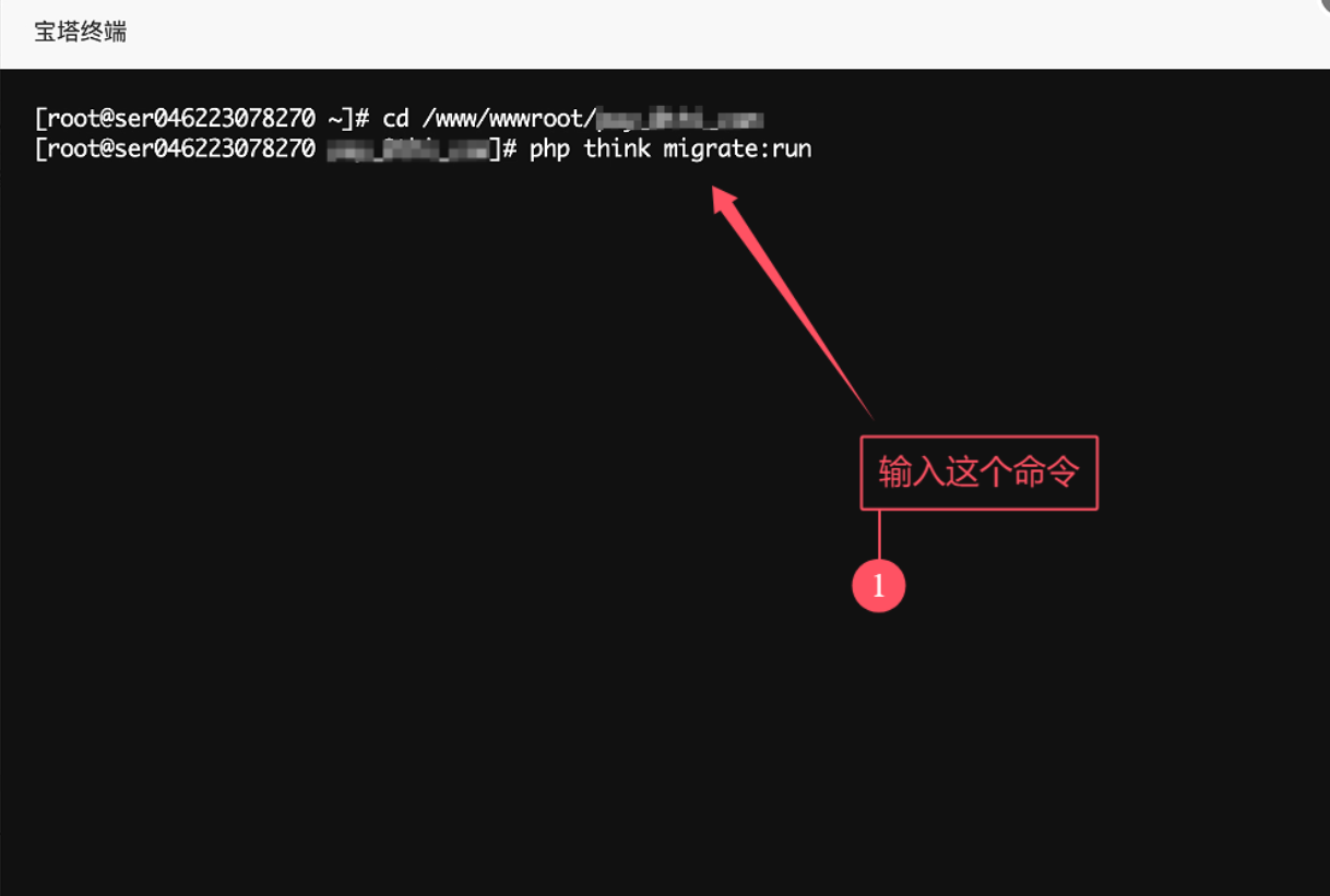 终端界面之后输入命令php think migrate:run进行数据库更新操作