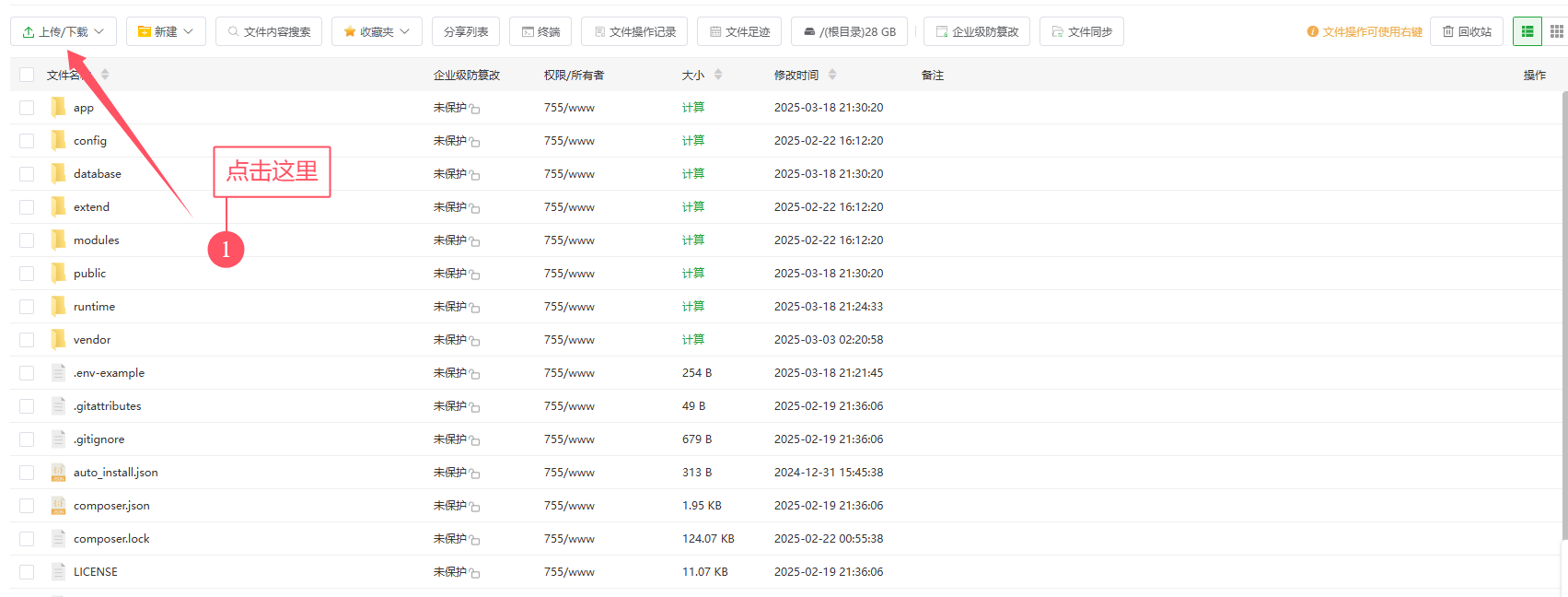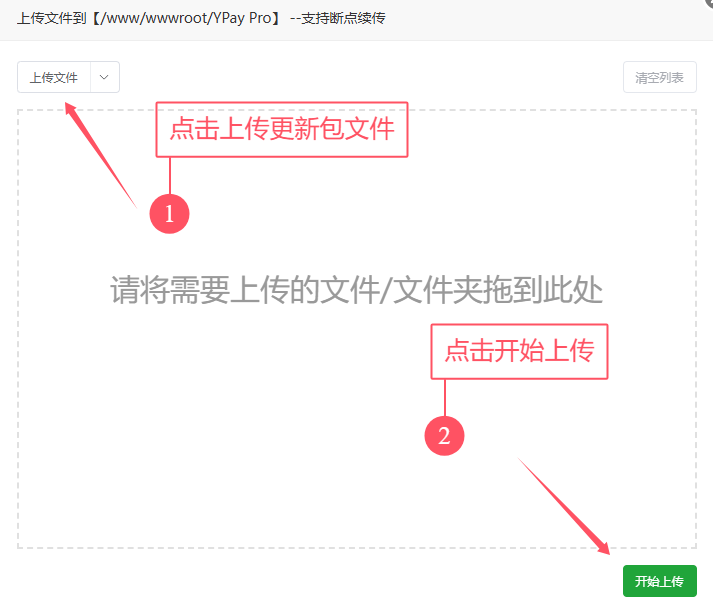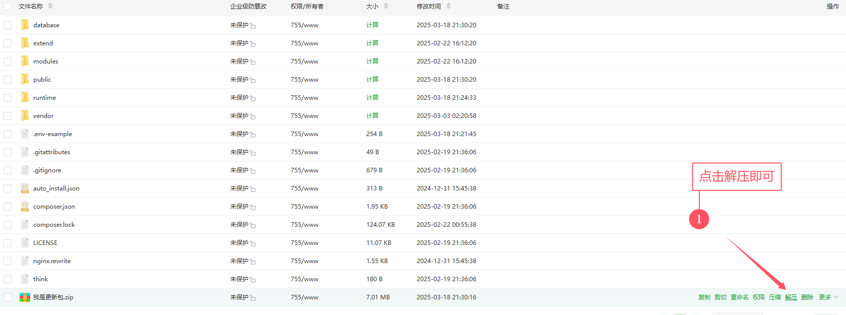 更新包文件到根目录,上传成功之后找到更新包并且解压